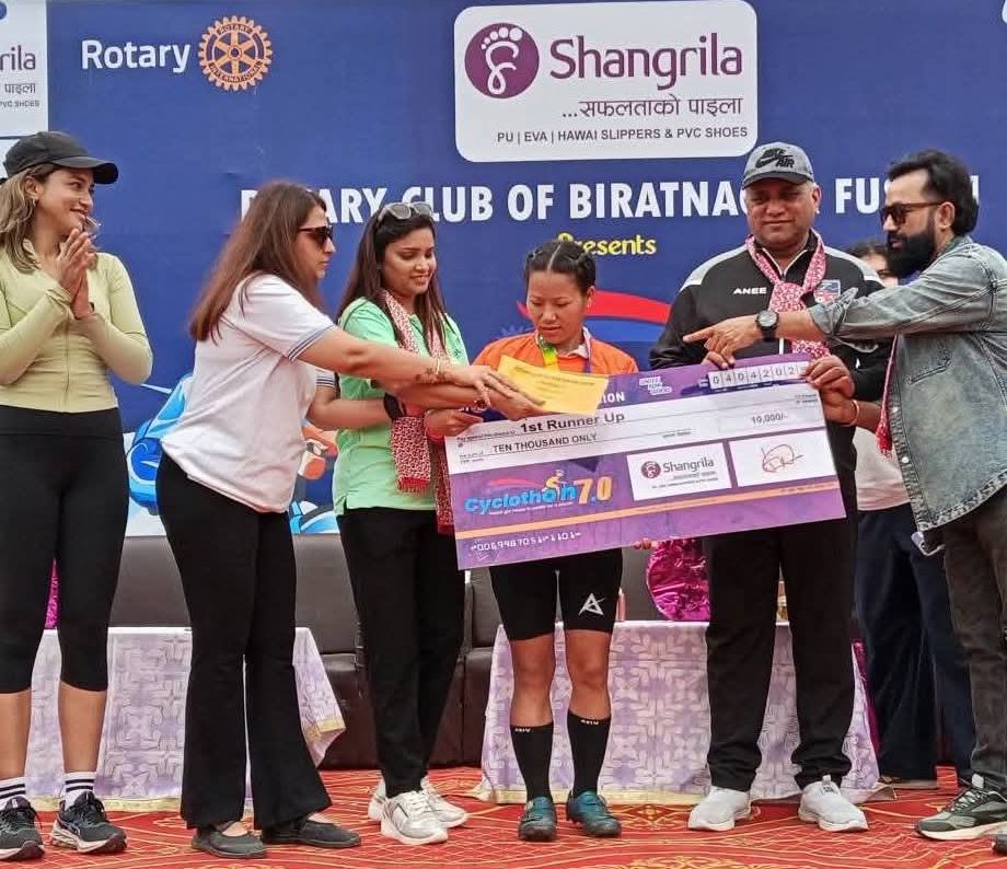 विराटनगर, चैत २१ गते । विराटनगरको आदर्श उच्च माध्यामिक विद्यालयको प्रागणवाट सुरु भएको ७ औं संस्करणको १५ किलोमिटर दुरीको साईकलोथन प्रतियोगिता सम्पन् भएको छ । रोटरी क्लब अफ बिराटनगर फ्युजनले आयोजना गरेको १५ किलो मिटर साइकलोथन प्रतियोगितामा तीन समूहले भाग लिएका थिए । प्रतियोगितामा पुरुष गियर साईकल तर..