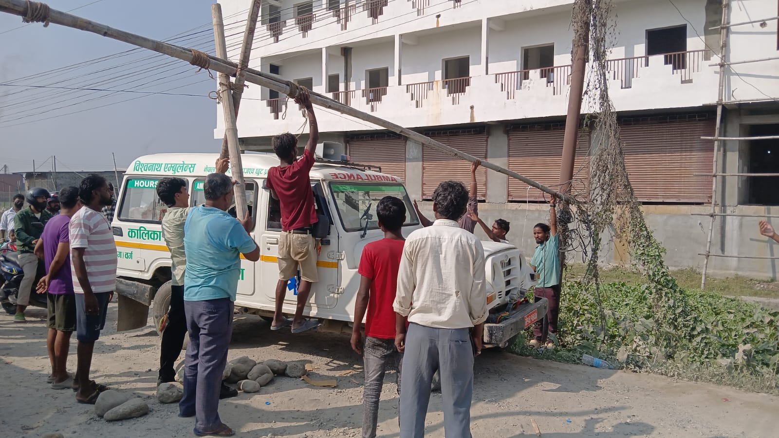कटहरीका सर्वसाधारणहरुले सडकमा ढाठ बाधेर दुई पांग्रे र चार पांग्रे सवारी साधन रोकेर विरोध विराेध प्रदर्शन गरेकाे हाे ।
