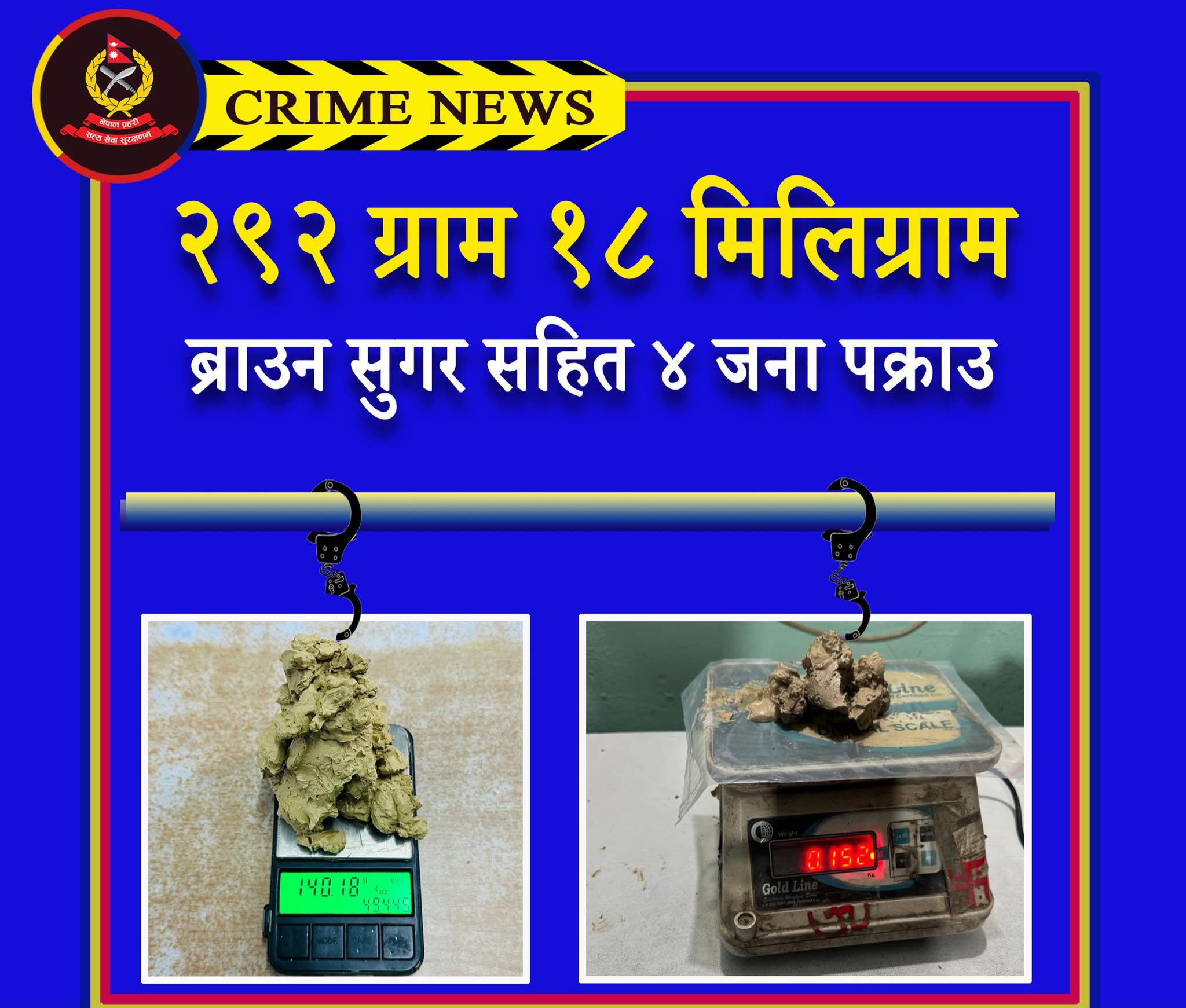 ब्राउन सुगर सहित पक्राउ परेका उनीहरुको आवश्यक कानुनी कारवाही तथा थप अनुसन्धान भईरहेको छ ।