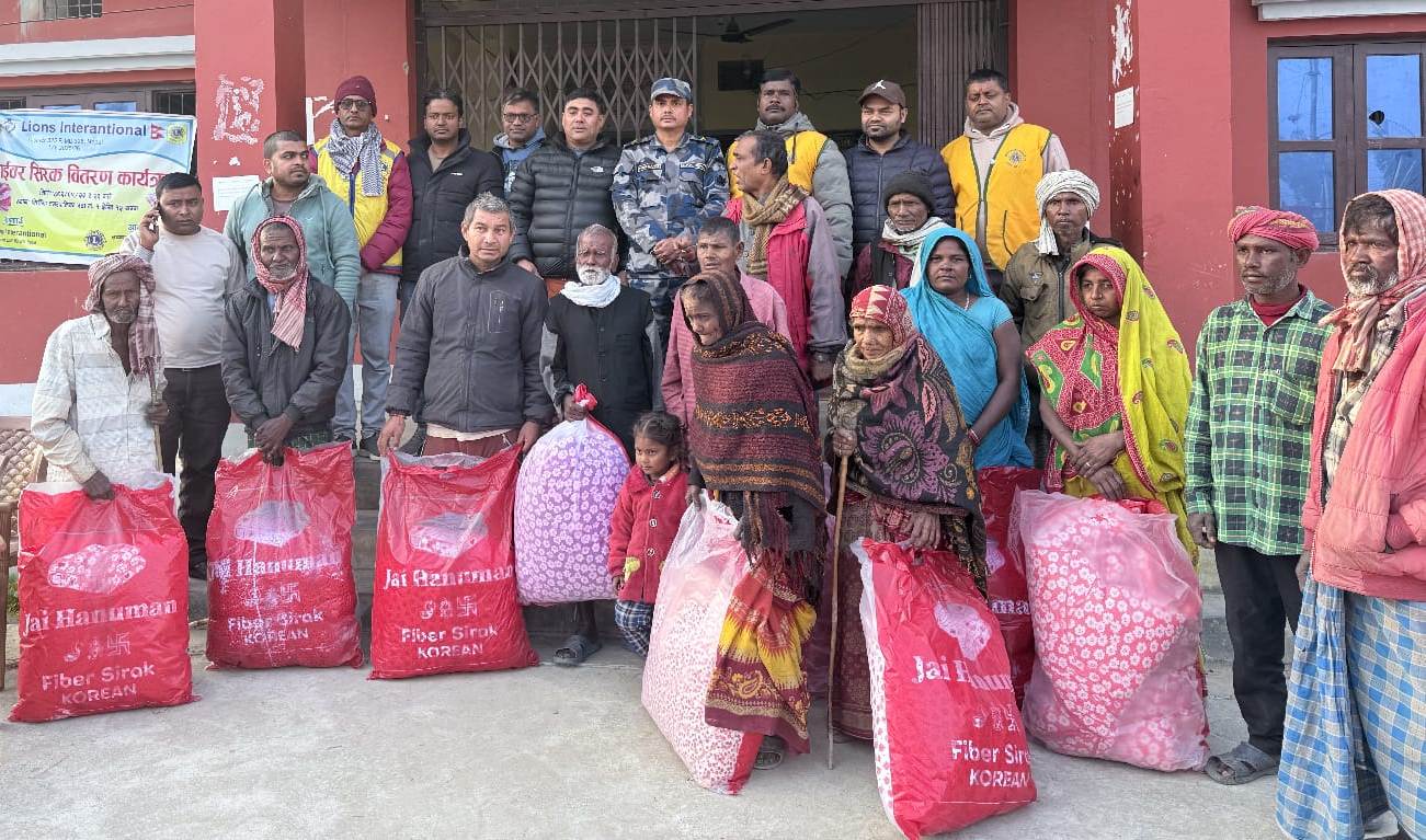 सिरहा, पुस २२ गते । पछिल्लो सातादेखि बढेको चिसो र शीतलहरका कारण कठ्यांग्रिदो जाडोले जनजीवन प्रभावित बनेपछि लायन्स क्लब अफ मिर्चैया सिटीले सिरहा जिल्लाको मिर्चैया नगरपालिकामा फाइबर सिरक वितरण गरेको छ ।