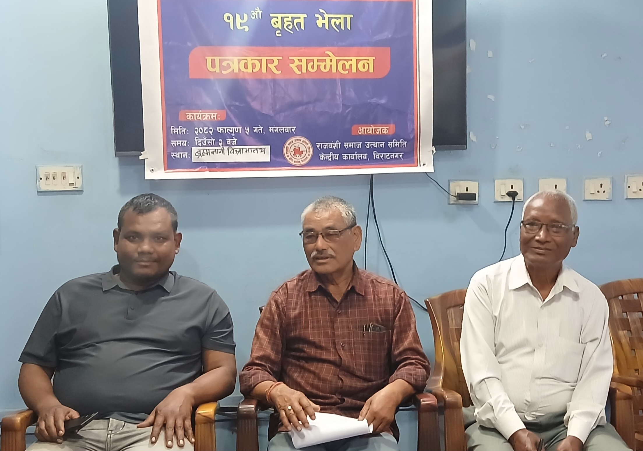 सरकारलाई फेरी सुनाउने गरी फागुन ६ गते १९ औं बृहत भेला तथा र्याली गर्ने लागेका छाै आसन्न निर्वाचन सकिए पछि दवाब स्वरुप संघर्षका कार्यक्रमहरु अगाडी बढाउने जानकारी गराउँदै र्यालीकाे लागि राजवंशी चोकमा भेला भएर मोटरसाइकल र्‍याली गरी बिष्णु माया पुस्तकालयमा बृहत् भेला हुने भएकाेले विराट राजवंशी समुदायले आफ्नो भेषभूषा पहिरणमा सहभागी हुन सम्पुर्ण विराट राजवंशी समुदायहरूलाई आग्रह गरेका छन् ।